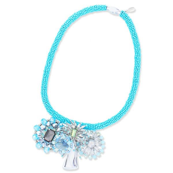 キラキラのフラワーモチーフが目を引く、華やかな印象のネックレス。各フラワーモチーフに、パール調ビーズやビジューをを中心にあしらう事で、よりゴージャな仕上がりになっています。パーティーシーンにもお楽しみ頂ける一品です。着脱が簡単なマグネットリンクになっているのもおすすめです。