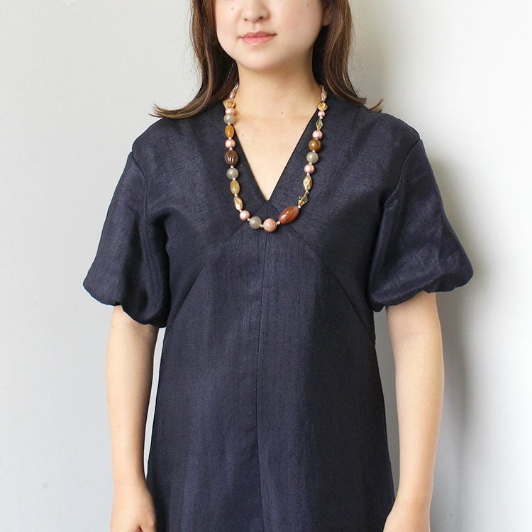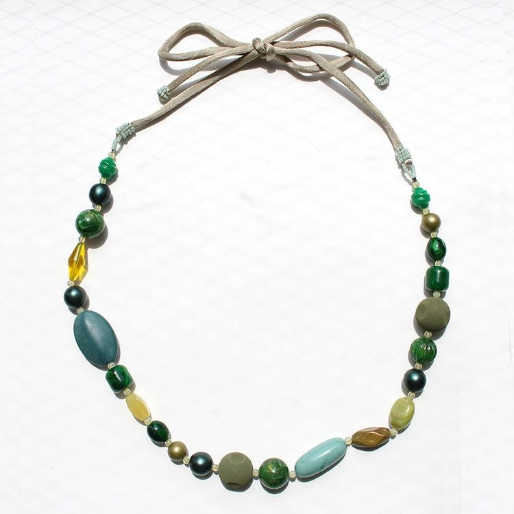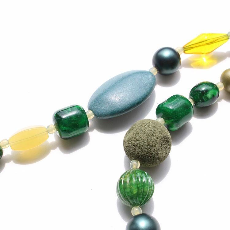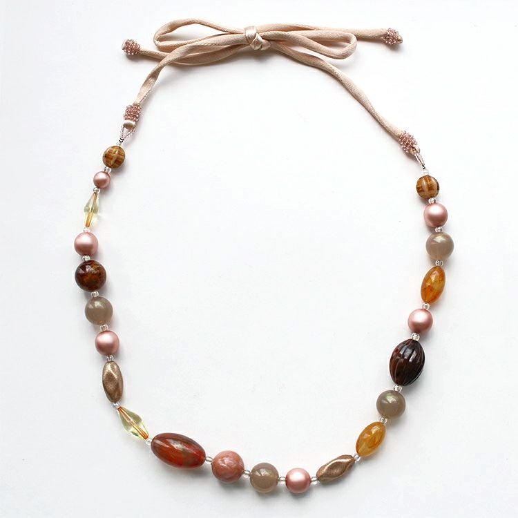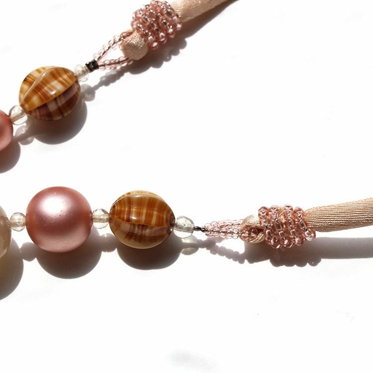 異なるニュアンスのヴィンテージビーズを繋げたロングネックレス。イタリアならではの絶妙なカラーが魅力です。