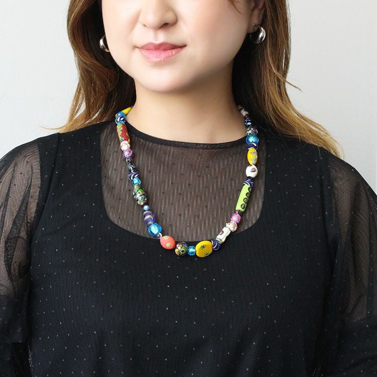 ベネチアンヴィンテージガラスビーズデザインロングネックレス