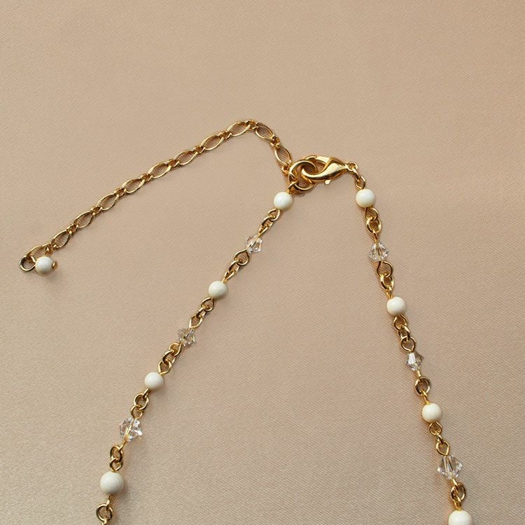 8mm玉マジョルカパール×キュービックジルコニアフラワーネックレス/1021016