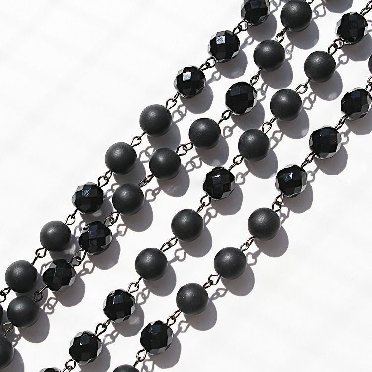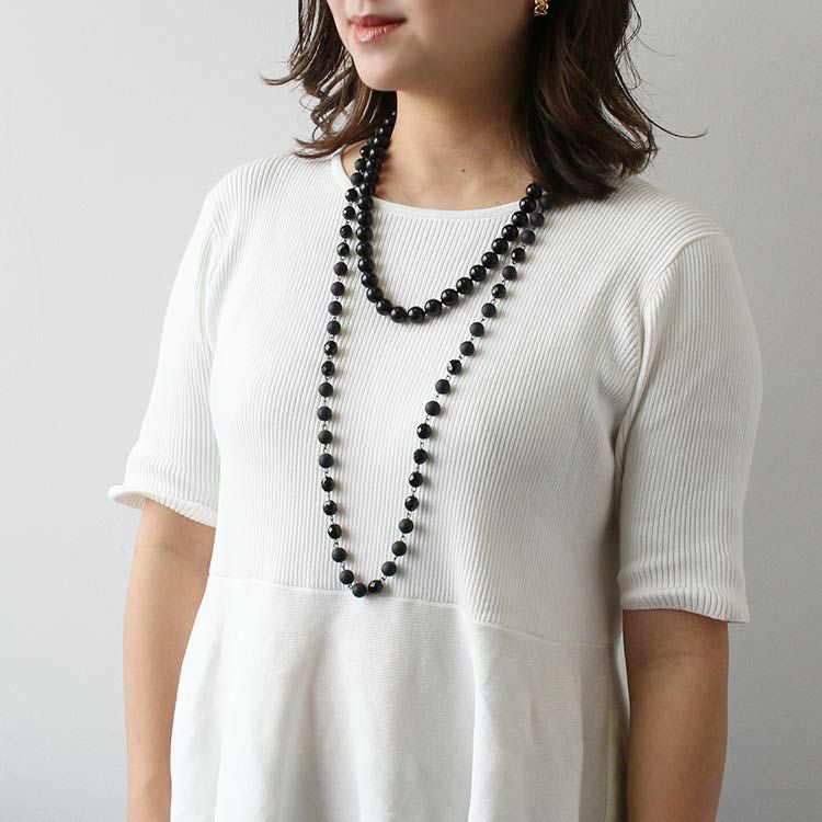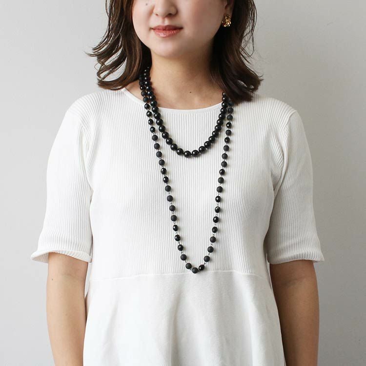 同色のニュアンスの異なるビーズを組み合わせたロングネックレス。パーティーなどでエレガントに使用するのはもちろん、カジュアルなコーディネートにも最適です。
