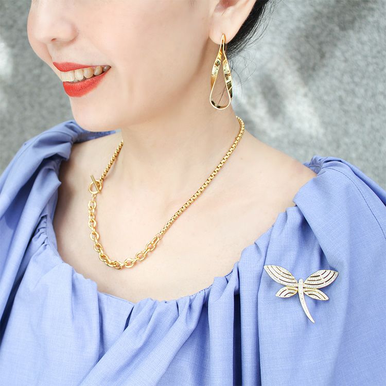 セミマットな18Kメッキはカジュアルシーンに合わせやすく、抜け感のある軽やかな着け心地はデイリーユースに活躍すること間違いありません。