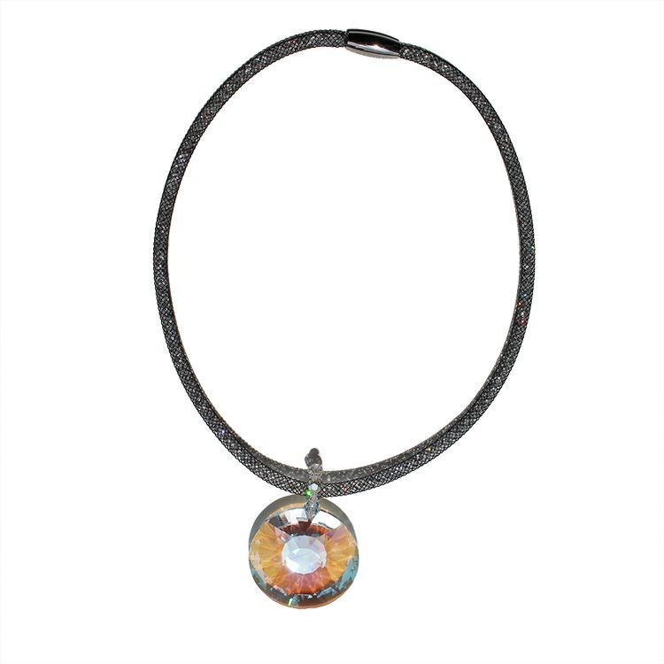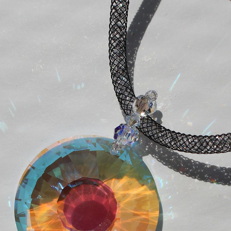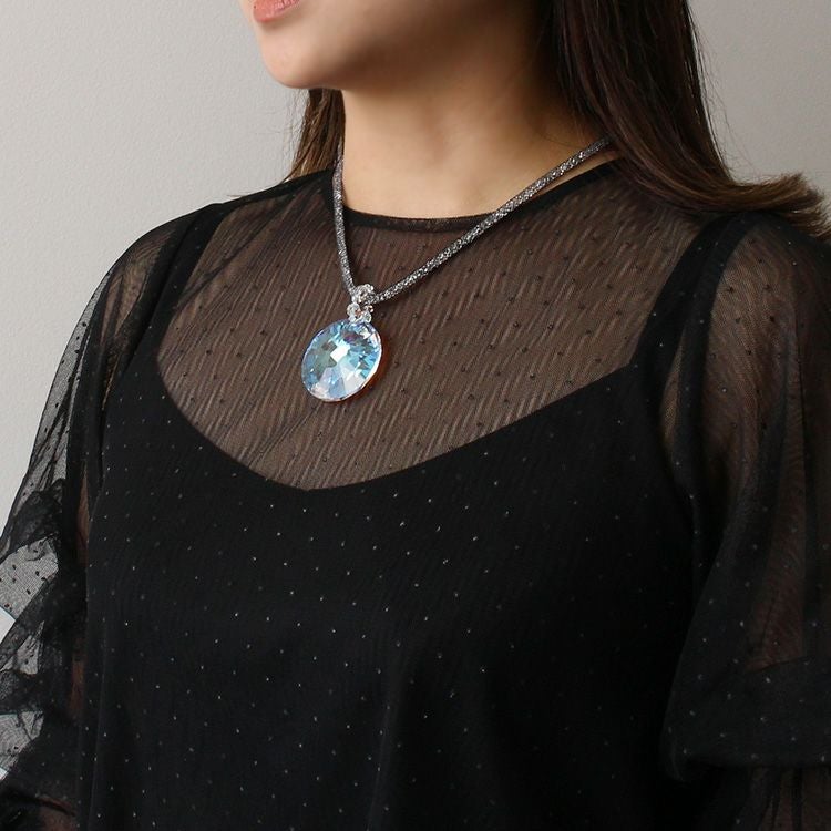 オーストリアの老舗、世界最高峰のクリスタルガラスブランドが製造した大粒のクリスタルガラスが煌めくネックレス。ナイロンメッシュの中に約1,000粒もの小さなクリスタルガラスが入ったコードを使用し、大粒、小粒、それぞれの輝きの美しさをお楽しみいただけます。