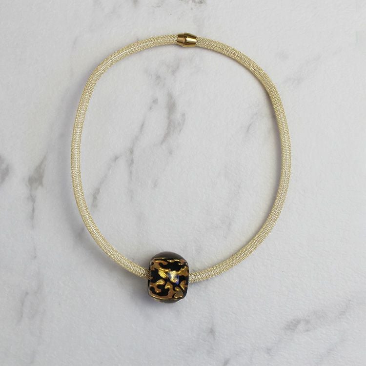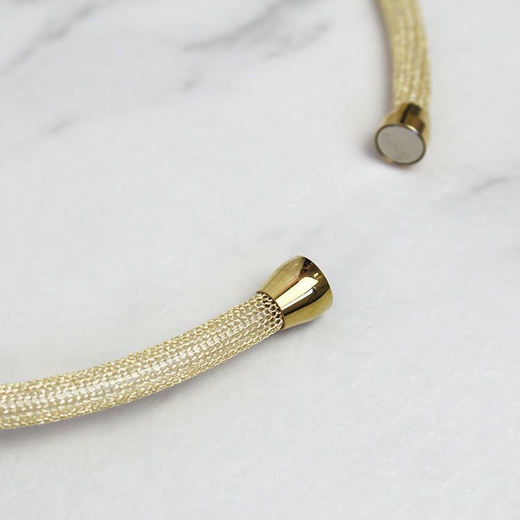 ZSiSKA(シスカ)のパーツに、ゴールドコーティングを施したメッシュチューブを組み合わせたアビステオリジナル商品。 コードからパーツを取り外しできるので、同シリーズのネックレスとパーツを組み替えてアレンジをお楽しみいただけます。