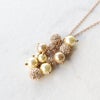 肌に馴染みやすいピンクゴールドの細みのロングチェーン。ペンダントには 大小異なるパールとクリスタルがほどこされたオーブ状のモチーフが連なっています。