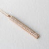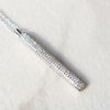 細みのチェーンに縦長フォルムのペンダントが胸元を綺麗にみせてくれます。丸みを帯びたペンダントの表面には無数のチェコクリスタルガラスがあしらわれ、フェミニンな印象をあたえてくれます。