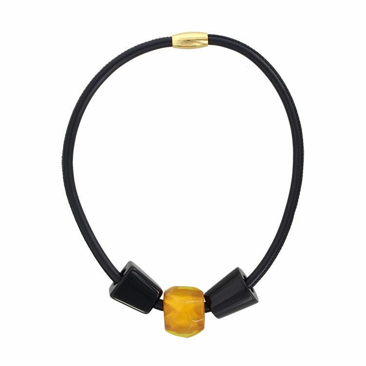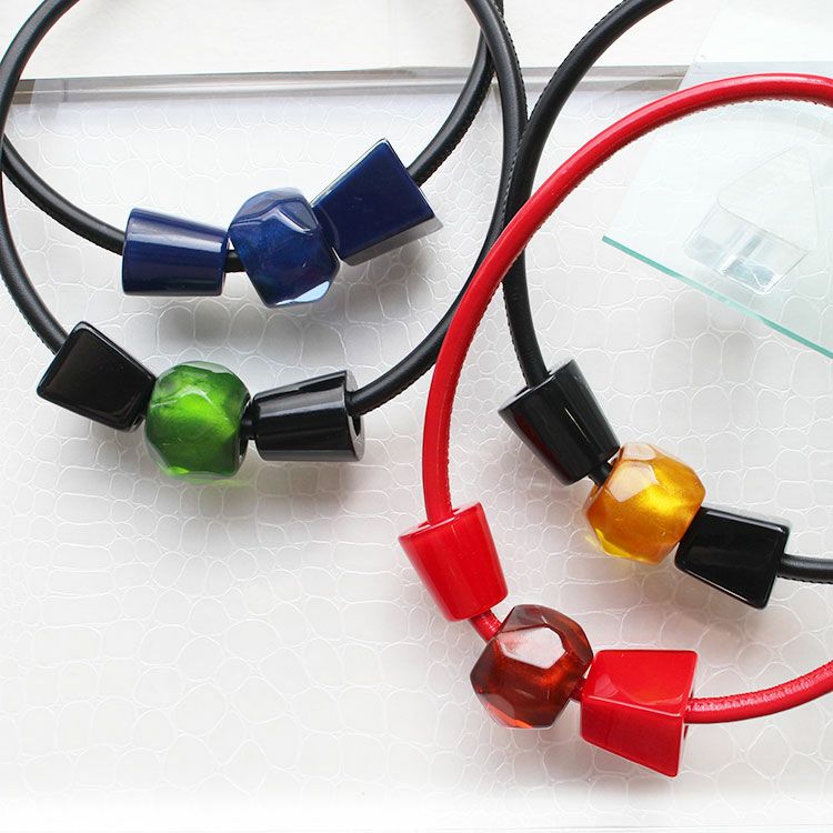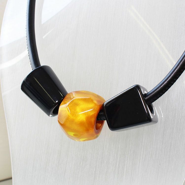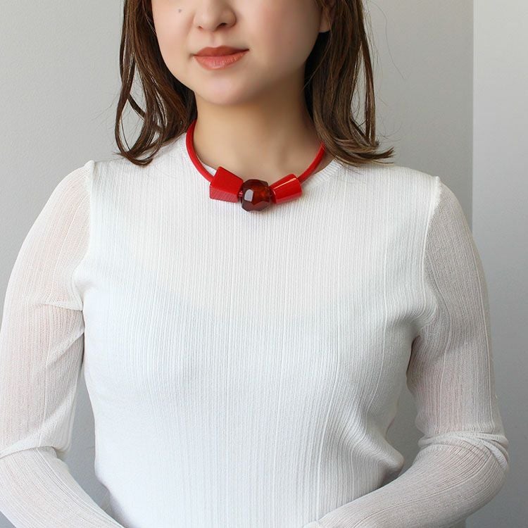 上質な樹脂、ポリエステルレジンの特性を活かし、ガラスのような質感を再現しつつも、軽くてつけやすいことで人気を博しています。肌に触れる部分に金属を使用していないため、アレルギーの方でも安心してお使いいただけます。