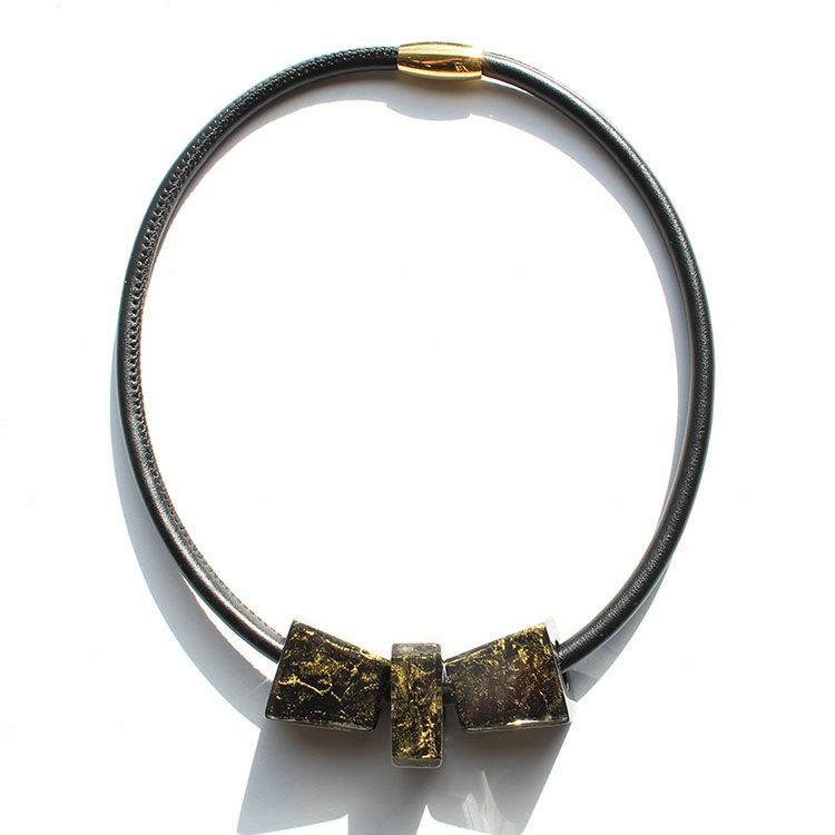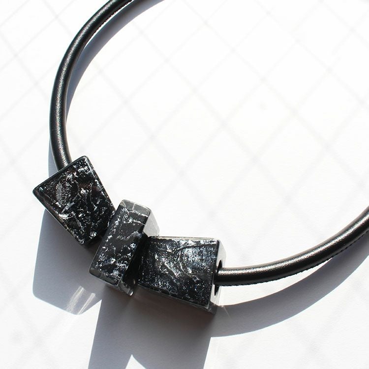 上質な樹脂、ポリエステルレジンの特性を活かし、ガラスのような質感を再現しつつも、軽くてつけやすいことで人気を博しています。肌に触れる部分に金属を使用していないため、アレルギーの方でも安心してお使いいただけます。