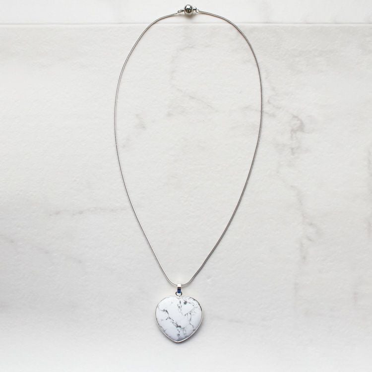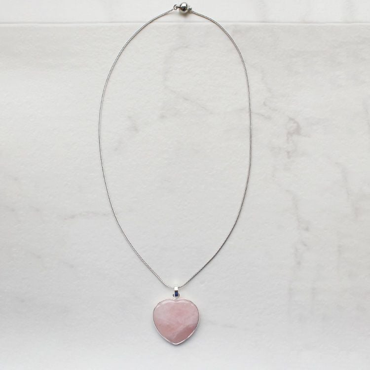 天然石を使用した大ぶりのハートモチーフが目を惹くネックレス。細身のしなやかなチェーンは使いやすい長さの60cm。