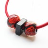 上質な樹脂、ポリエステルレジンの特性を活かし、ガラスのような質感を再現しつつも、軽くてつけやすいことで人気を博しています。肌に触れる部分に金属を使用していないため、アレルギーの方でも安心してお使いいただけます。