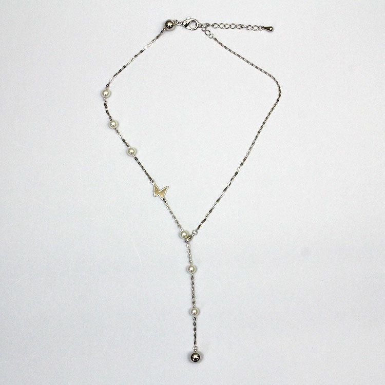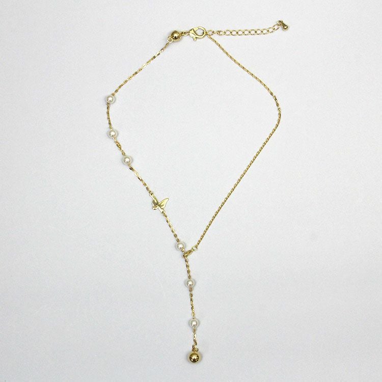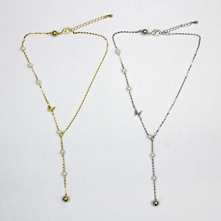 バタフライモチーフ×パールY字ショートネックレス/1240207
