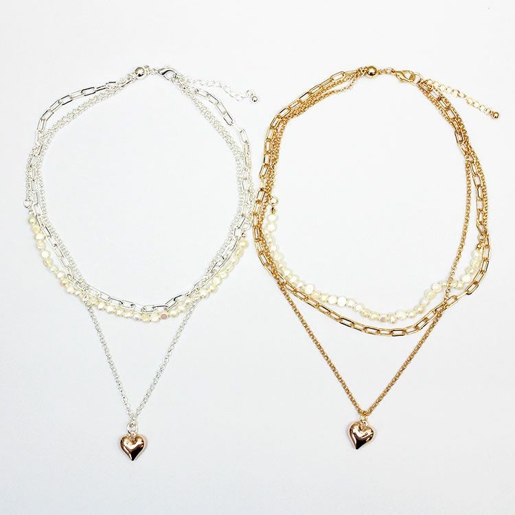 淡水パール×チェーン×ハートペンダント3連ショートネックレス/1240209