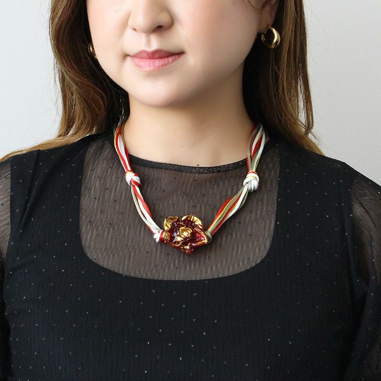 ベネチアンガラスオロロットローズモチーフショートネックレス