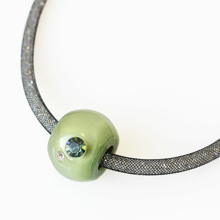 素材玉:レジン、クリスタルガラス コード:6mm、クリスタルガラス、ナイロンメッシュ(PVC)、ステンレススチール(クラスプ)
