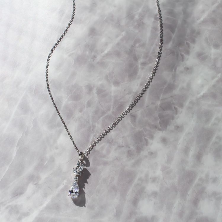 ジュエリーに用いられるダイヤモンドと同様の精巧なカットを実現した、特別なキュービックジルコニアを使用したネックレス。そのカット技術により、光を最大限に反射し、曇りのない美しく眩い輝きを放ちます。