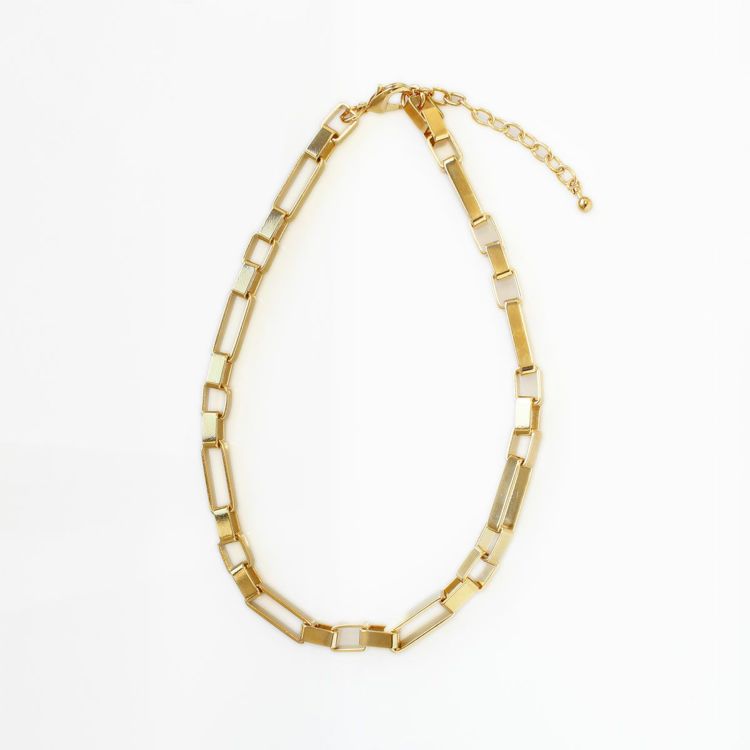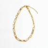 ゴールドカラーのメタルチェーンショートネックレス。ヨーロッパのチェーンメーカーがデザインしたシンプルながらも個性豊かなチェーンは単体でも重ね付けやセット使いでもおしゃれ。合わせやすいので使い勝手も抜群です。