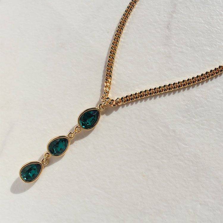 ヨーロッパのチェーンメーカーが生み出す、シンプルながらもこだわりのある金色のチェーンにクリスタルガラスの大粒ビジューを合わせたショートネックレス。揺れ動くたび、光に当たるたびキラキラと反射する美しいカッティングストーンが高揚感を与えてくれます。シンプルな装いに合わせたデイリー使いも、ワンピースに合わせてパーティーやクルーズ、ディナーなどおしゃれしたい日にも。
