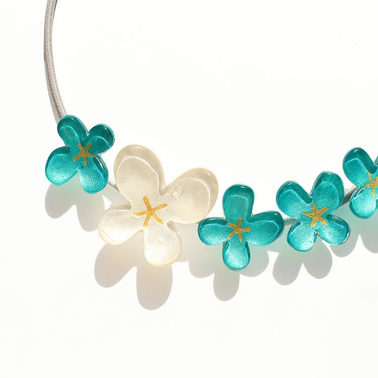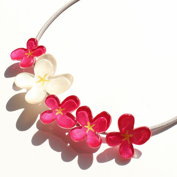 鮮やかで繊細な樹脂製ハンドペイントの花々が、プルメリアの花の美しさを彷彿とさせるよう丁寧にハンドメイドで描かれています。