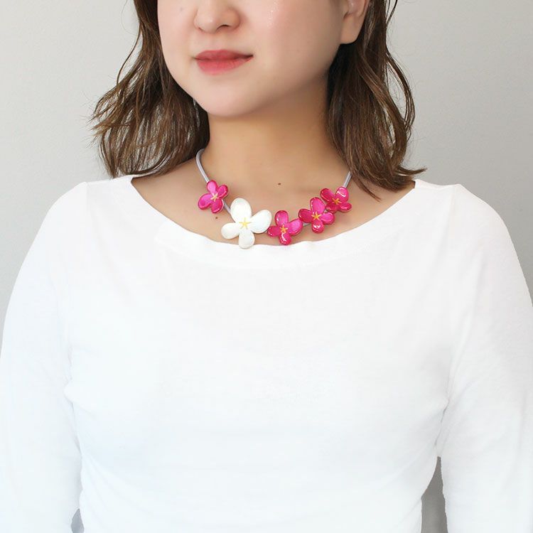 大胆な色彩と個性的なデザインが特徴のHANAコレクションは、熱帯・亜熱帯アメリカ原産のプルメリアを独創的に解釈した作品です。