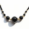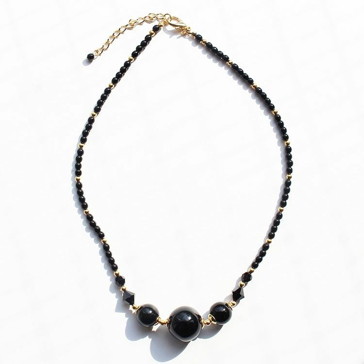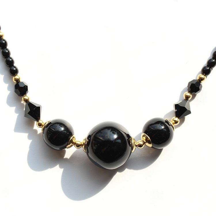 ベネチアンガラスのヴィンテージビーズを使用したショートネックレス。 ベネチアンガラスならではの温かみのある優しく深い艶が特徴で、光の当たり方で宝石のような美しい輝きを放ち、シックでありながら華やかな存在感が魅力です。 使いやすい長さで普段使いはもちろん、女子会、お出掛けにご利用いただけます。