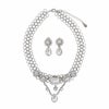 キラキラと煌めくビジューが華やかなショートネックレスとイヤリングのセット。存在感のある大粒のビジューが特別感を演出しています。パーティー、ブライダルジュエリーにふさわしいネックレス・イヤリングセットです。