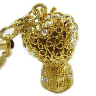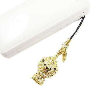 王冠を付けたかわいい百獣の王ライオンのストラップ。全体をピンク色のクリスタルガラスで覆い、たてがみにはオーロラのストーンで印象づけました。
