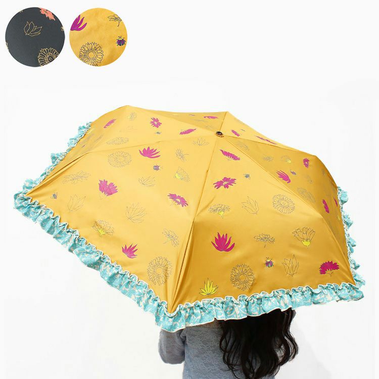 ガーベラの花をイメージして作られたアビステオリジナル晴雨兼用折り畳み傘。ガーベラの周りには、幸運モチーフのてんとう虫やハチがあしらわれています。遊び心のあるユニークなデザイン。遮蔽率にも優れ、雨はもちろん、紫外線からもしっかりと守ってくれます。持ち運びに便利なポーチ付き♪