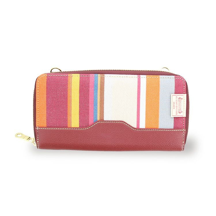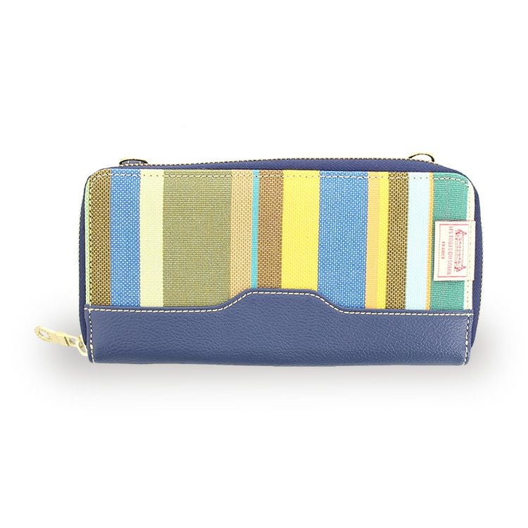 鮮やかなカラーが目を惹くフランス製の生地を使用した、日本製の長財布。軽いので、ストレスフリーで気軽に持ち歩けます。