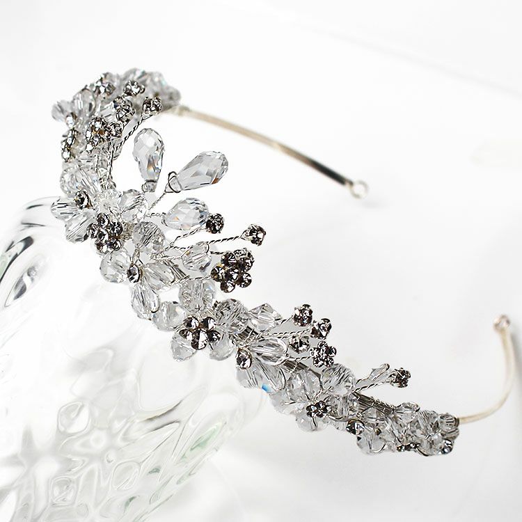 クリスタルガラスのお花がキュートなブライダルティアラは、かわいくて優しい印象に。ナチュラルやシンプルなドレスにも似合います。柄の部分は若干伸び縮みするので多少の幅調整は可能です。