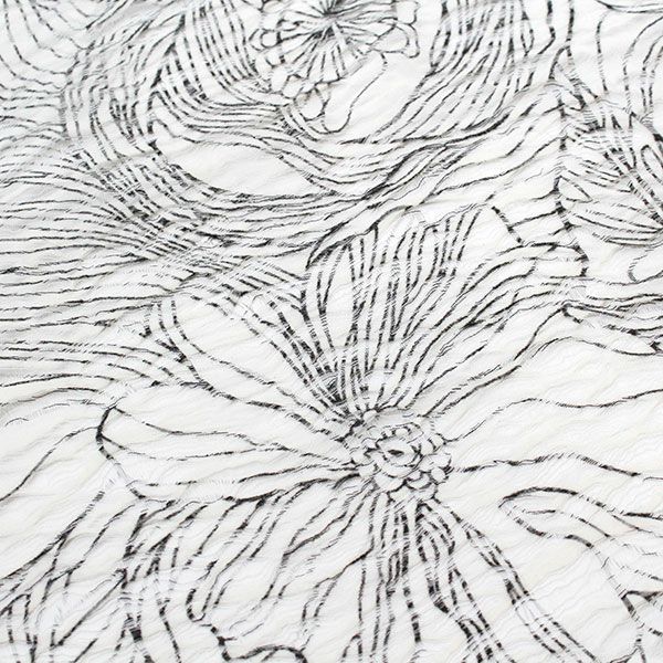 透け感のある素材にプリントした、サラリとして肌触りの柔らかなストールです。首元にかけるだけでワンポイントのおしゃれに♪
