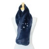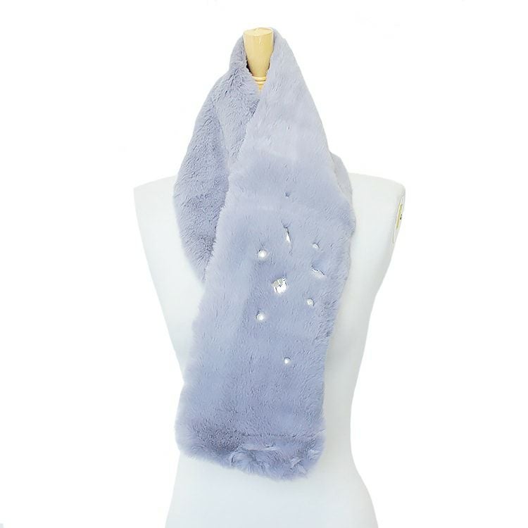 フワフワとした手触りがたまらないエコファーストール。いつものコーディネートに加えるだけで一気にエレガントな雰囲気に。大振りのクリスタルガラスが動くたびに美しく輝きます。