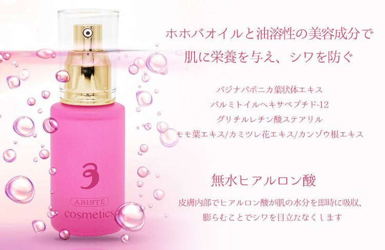 肌再生力を根本から促しもち肌へと導く植物性多機能オイルセラム主成分の万能オイル。オーガニックの植物油に、油い解ける油溶性の美容成分で、肌に栄養を与えシワをふせぎます。さらさらの使用感は、オイル嫌いの方にも好まれます。