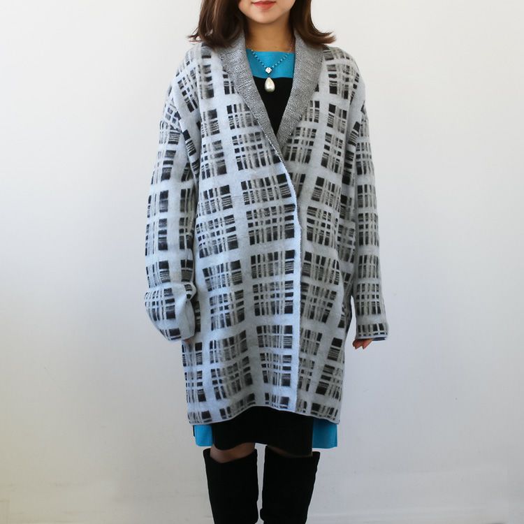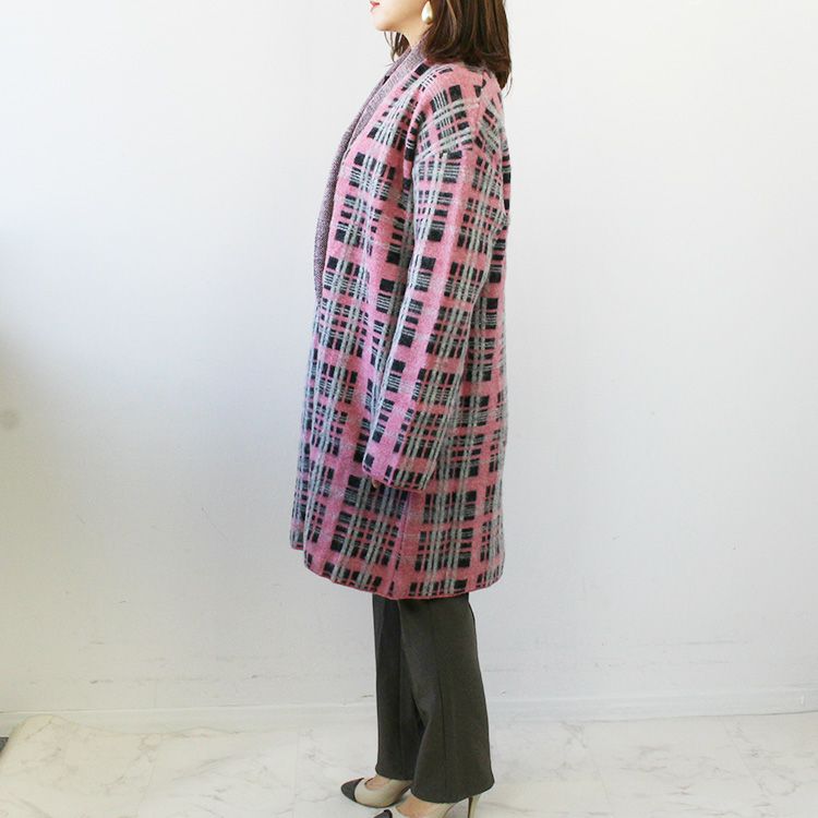 温かいモヘヤ混のニットガウン。華美になりすぎず気分を明るくしてくれるカラーとチェック柄は、カジュアルな普段着にもさらっと羽織るだけでたちまちオシャレ感を演出してくれる、一枚持っておきたいアイテム。