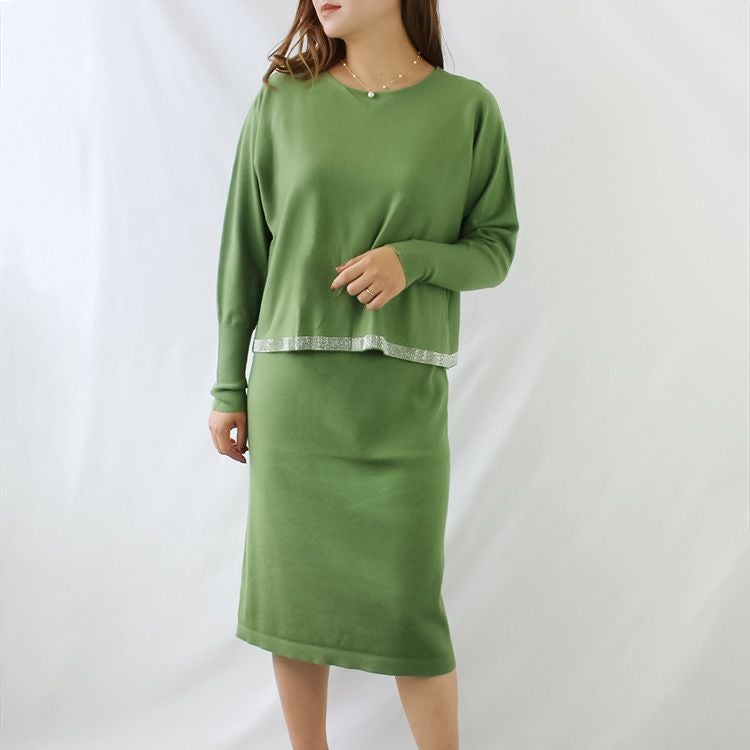 チクチクしない滑らかな肌触りのハイゲージニットワンピース。ニットワンピースながらも落ち感があり体にフィットしすぎないデザイン。セットアップのように見えるので、これ一枚でコーディネートが完成します。