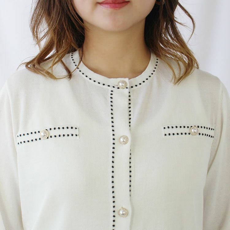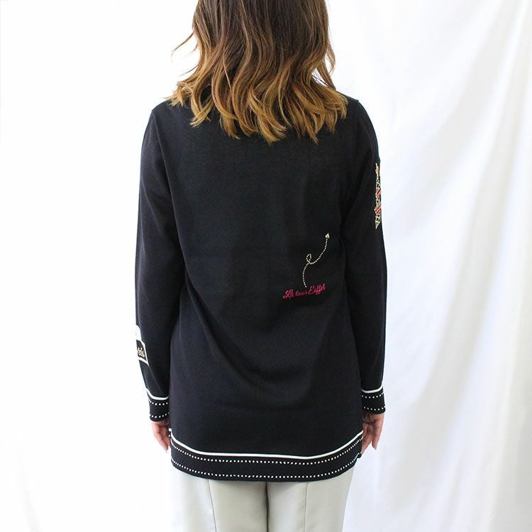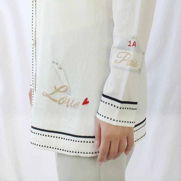 ステッチのデザインや、散りばめられたシックで大人可愛いロゴやモチーフがアクセントのカーディガン。さらりとした薄手の生地で、裾にゆとりがあるので落ち感がありスッキリした印象に。お尻が隠れるやや長めの丈もポイント。ボタンを閉めて、トップスとしてご着用いただくのがおすすめです。