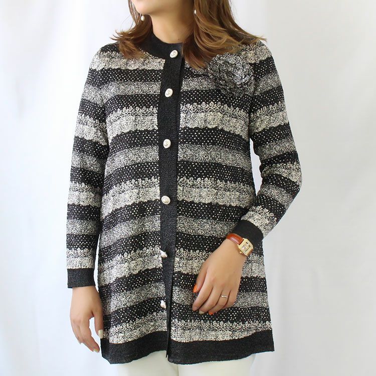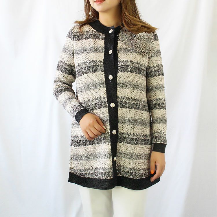 体のラインを拾いすぎないので楽に着られ、食事会や入学式などかしこまったシーンにもご使用いただける品の良いデザイン。コサージュは取り外し可能です。
