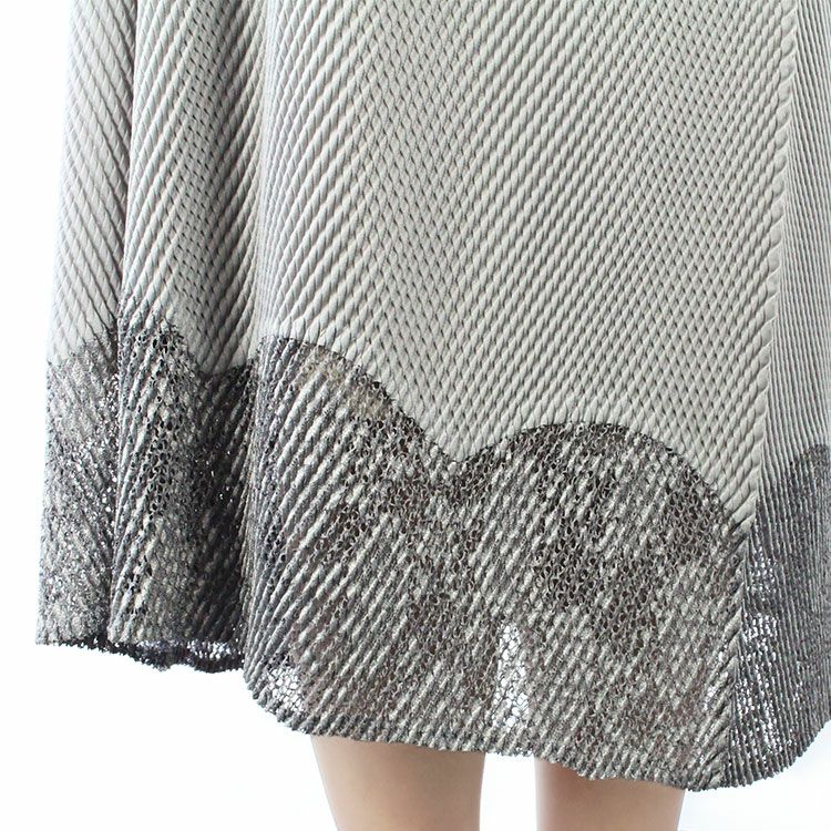 ※こちらの商品はハンガーに吊るした状態で計測しています。プリーツ素材の特性上、採寸の誤差が出やすい商品です。伸縮性に富むため表記サイズを超えてご着用が可能です。ご参考値としてご確認くださいませ。