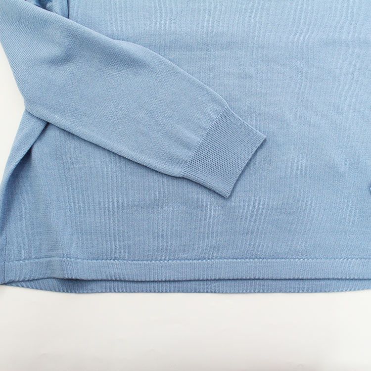 セーターのチクチクが苦手な方にもご着用いただきやすい、なめらかで肌触りの良いニット。品の良さと落ち着き、柔らかい印象を持つサックスブルーのプルオーバーです。春先、秋には一枚で、冬は暖かい機能性インナーに重ねたりアウターで調節してロングシーズン着用可能。