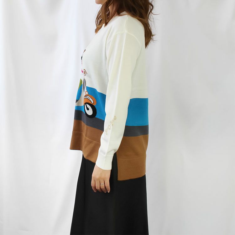 一枚で様になるキュートな柄。サイドスリットや長さに前後差のある仕様、袖の刺繍など、デザインの細部にもポイントが散りばめられています。裾にかけてストレートなシルエットで落ち感があるのでスッキリとした印象に。