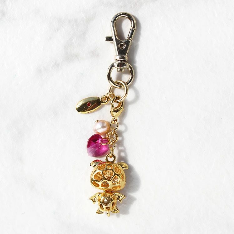 人気のミニブタキーホルダー。ハートのクリスタルガラスがキュート。