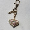 淡いトーンのマルチカラーで花柄を表現したハートモチーフのキーホルダー。裏側はハート模様の透かし仕様です。