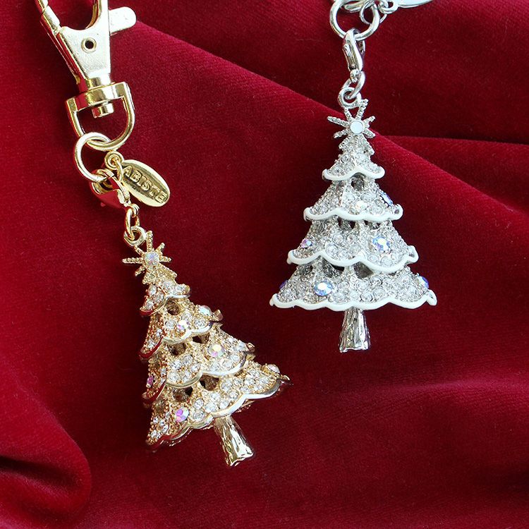 もみの木に雪が積もったようなキラキラのツリーモチーフチャーム。キーホルダーやバッグチャームとしてお使いいただけます。