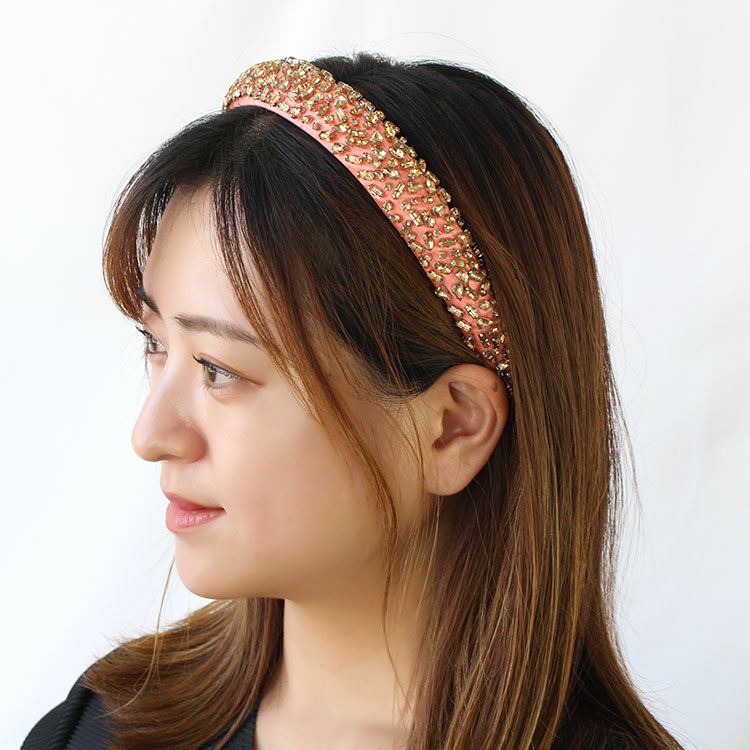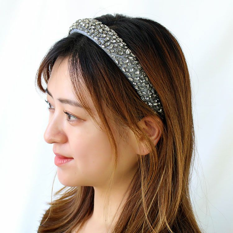 ビジューが一面に敷き詰められた華やかなカチューシャ。つけるだけでいつものコーディネートを格上げします。