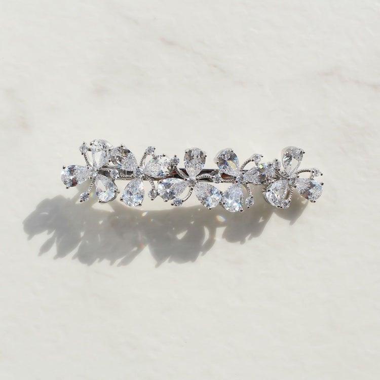 キュービックジルコニアフラワーモチーフヘアクリップ