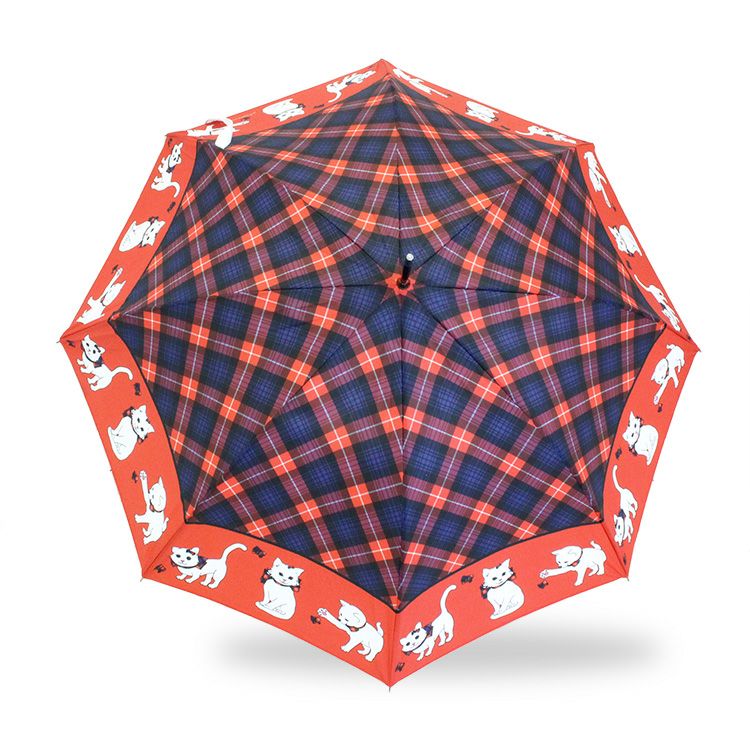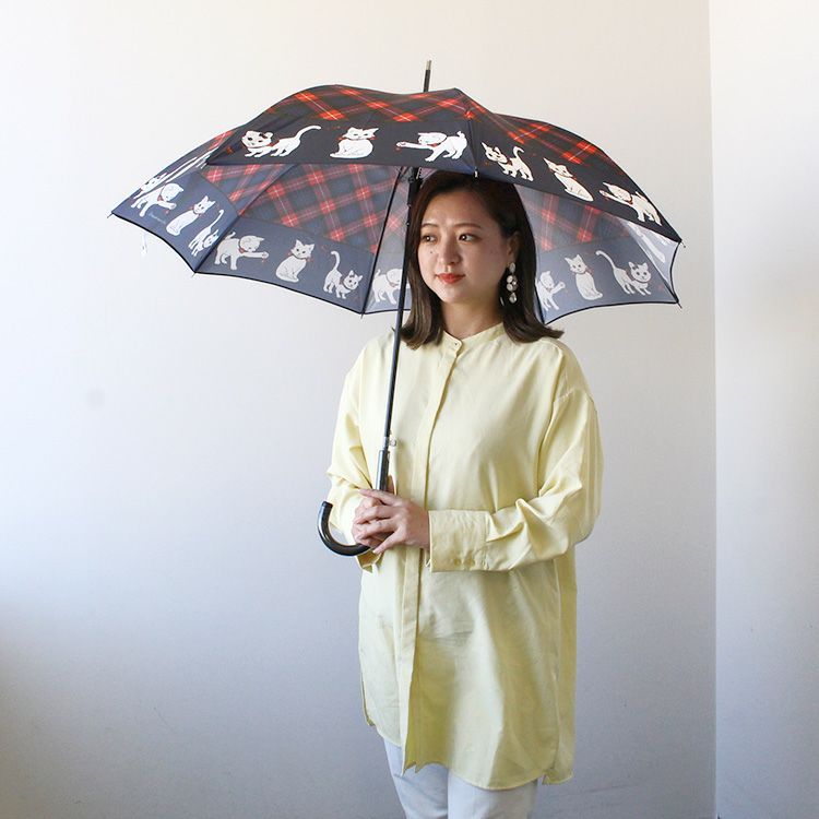 【Guy de jean】ネコモチーフ×チェック晴雨兼用長傘/2243003-