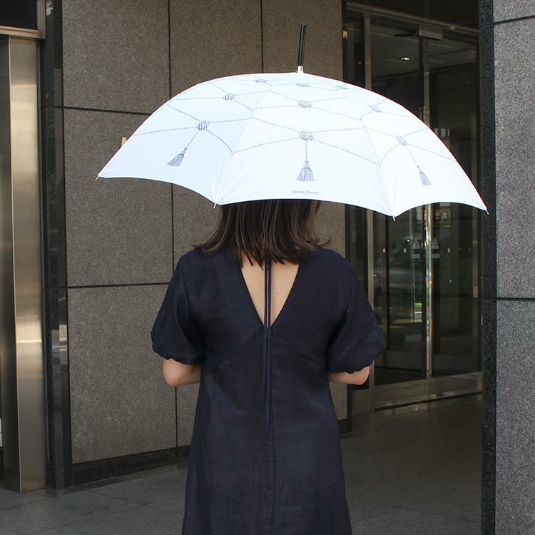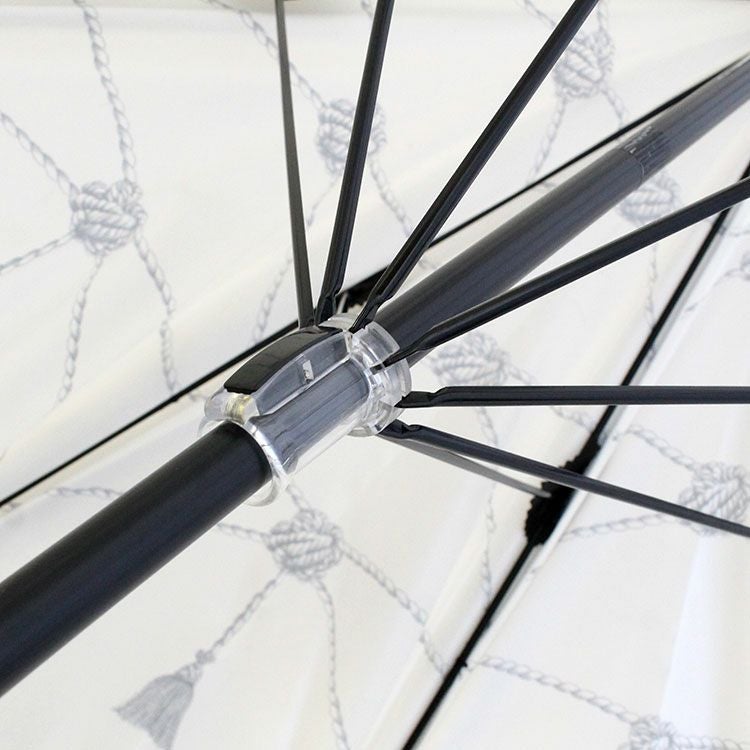 ロープ柄がエレガントな長傘。おしゃれな大人の女性にふさわしいアンブレラです。傘のサイズは直径約101cmとかなり大きめ。濡れにくさは抜群です。