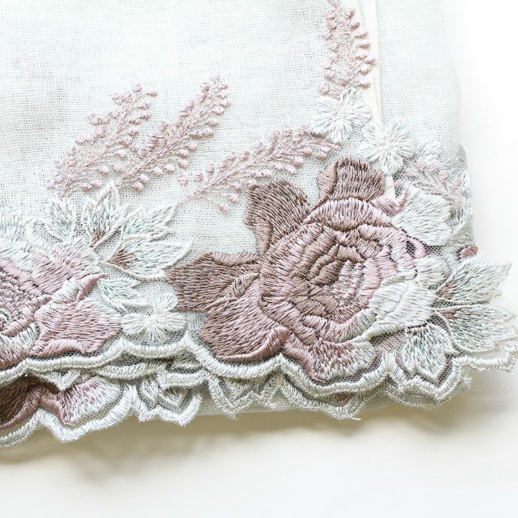 リネン100%フラワーモチーフ刺繍ストール/2253015-