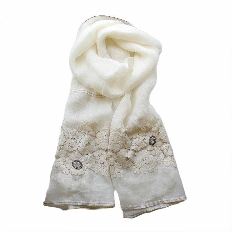 リネン100%フラワーモチーフ刺繍ストール/2253017-