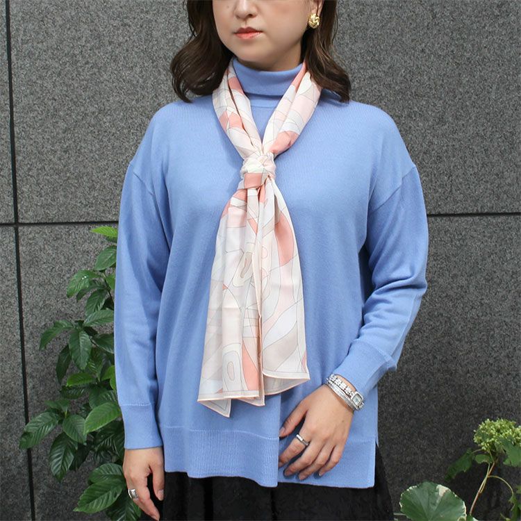 シルクのような肌触りが特徴のモダール素材を使ったストール。抽象的な幾何学模様をパステル調にしたことでエレガントなデザインに仕上がっています。