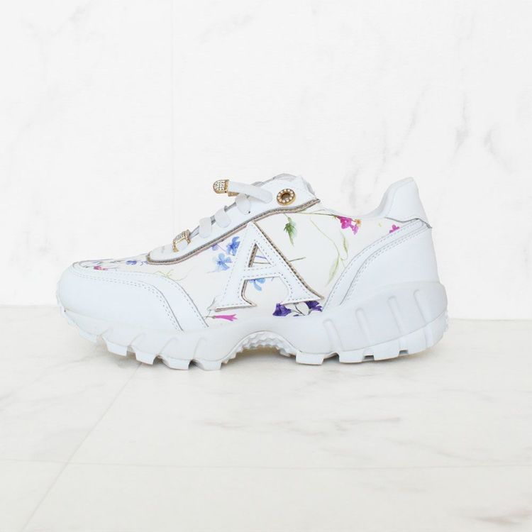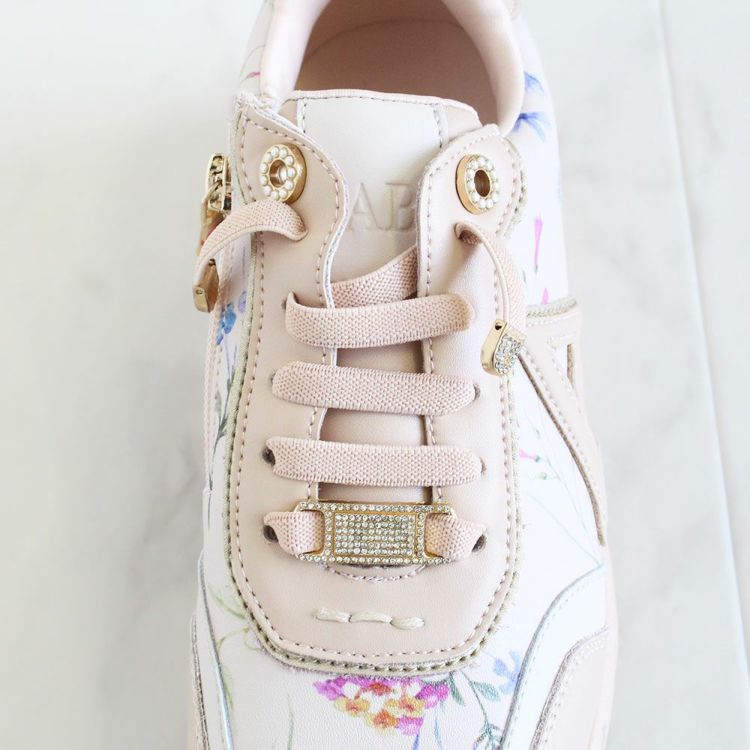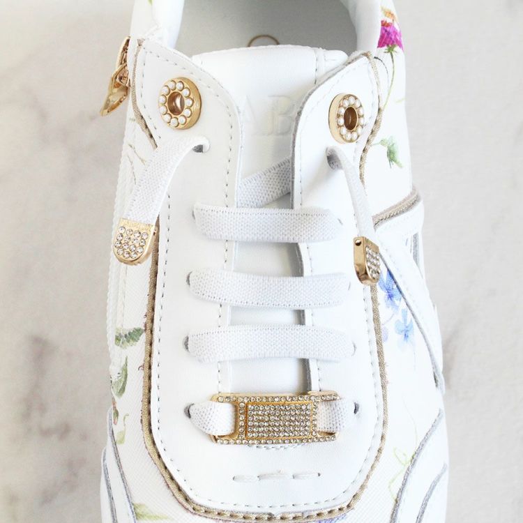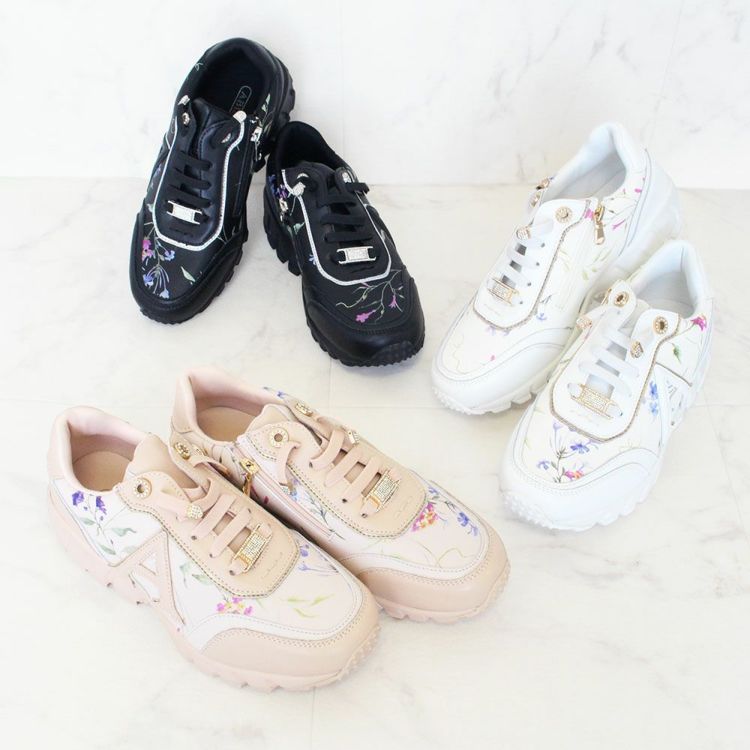 花柄のプリントを施し、パールやキラキラなどフェミニンな要素を散りばめたスニーカー。カジュアルすぎないデザインなので、ワンピースなどと合わせてレディな着こなしを楽しむのも◎。